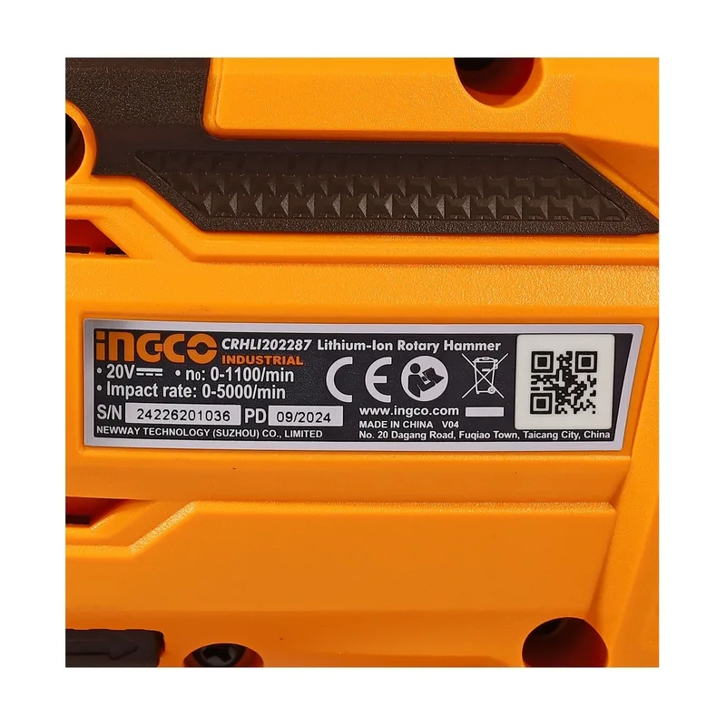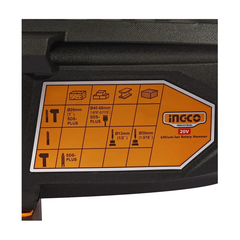สว่านโรตารี่ไร้สาย 20V 26 มม. พร้อมแบตเตอรี่ 2 ก้อน INGCO รุ่น CRHLI202287