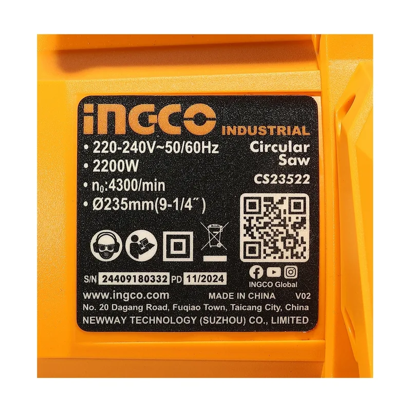 เลื่อยวงเดือน 220 โวลต์ 2200 วัตต์ INGCO รุ่น CS23522