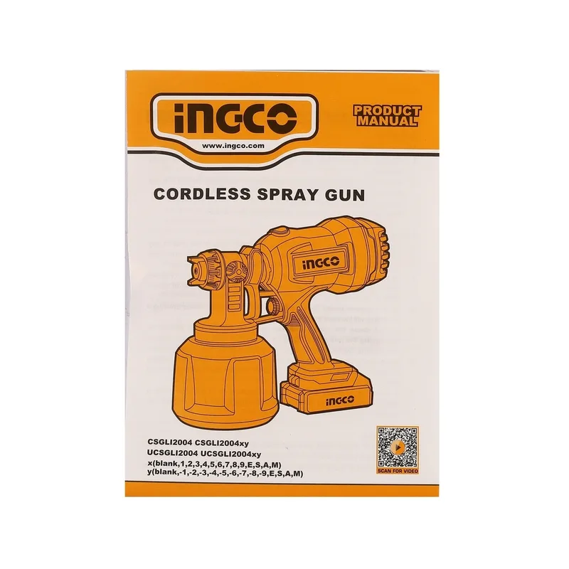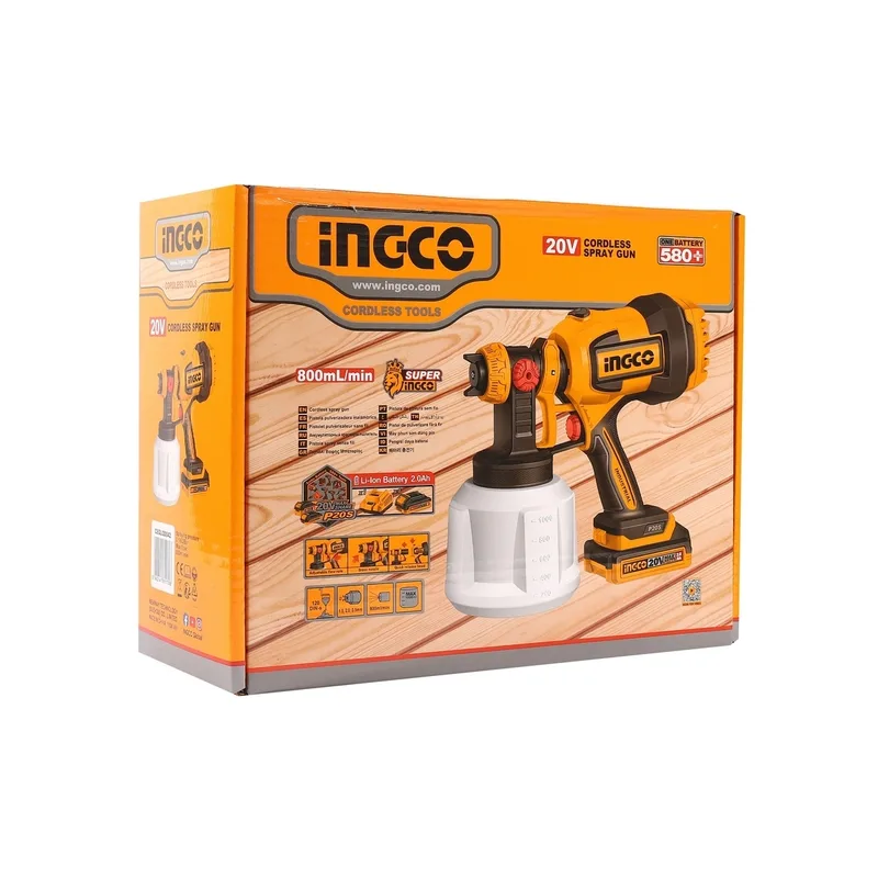 INGCO กาพ่นสีไร้สาย 20V พร้อมแบต 2.0Ah x1 ก้อน รุ่น CSGLI20042