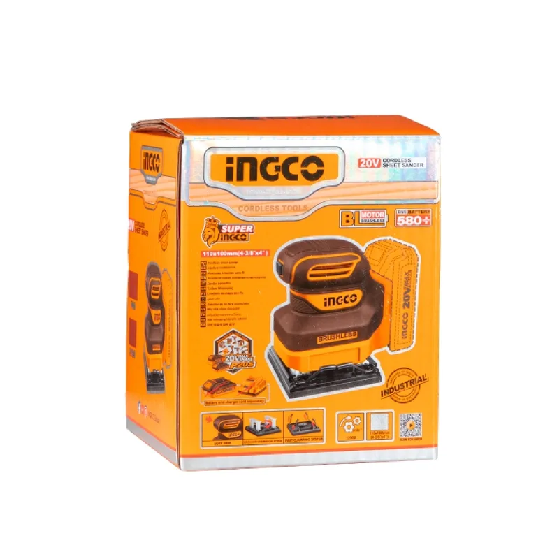 INGCO เครื่องขัดกระดาษทรายแผ่นไร้สาย 20V พร้อมแบต 2.0Ah x1 ก้อน รุ่น CSHSLI20241