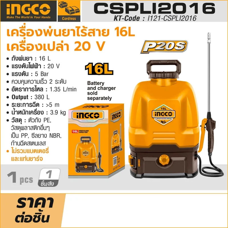 เครื่องพ่นยาไร้สาย INGCO รุ่น CSPLI2016