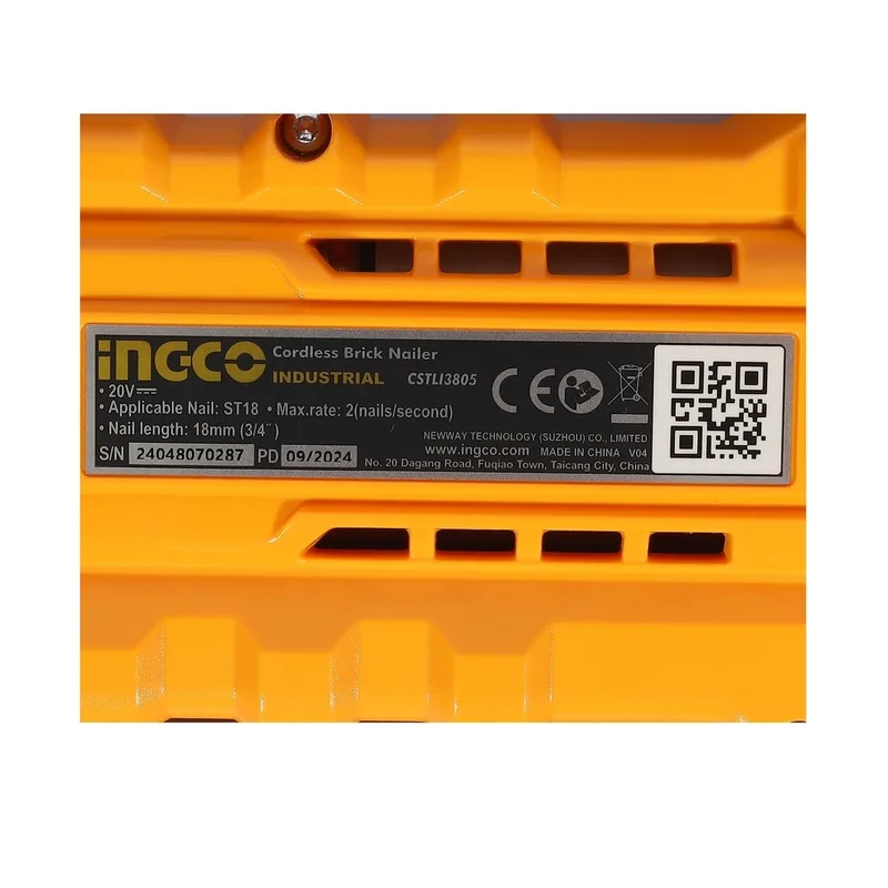 เครื่องยิงตะปูคอนกรีตไร้สาย 20 โวลต์ INGCO รุ่น CSTLI3805 (ไม่รวมแบตเตอรี่และแท่นชาร์จ)