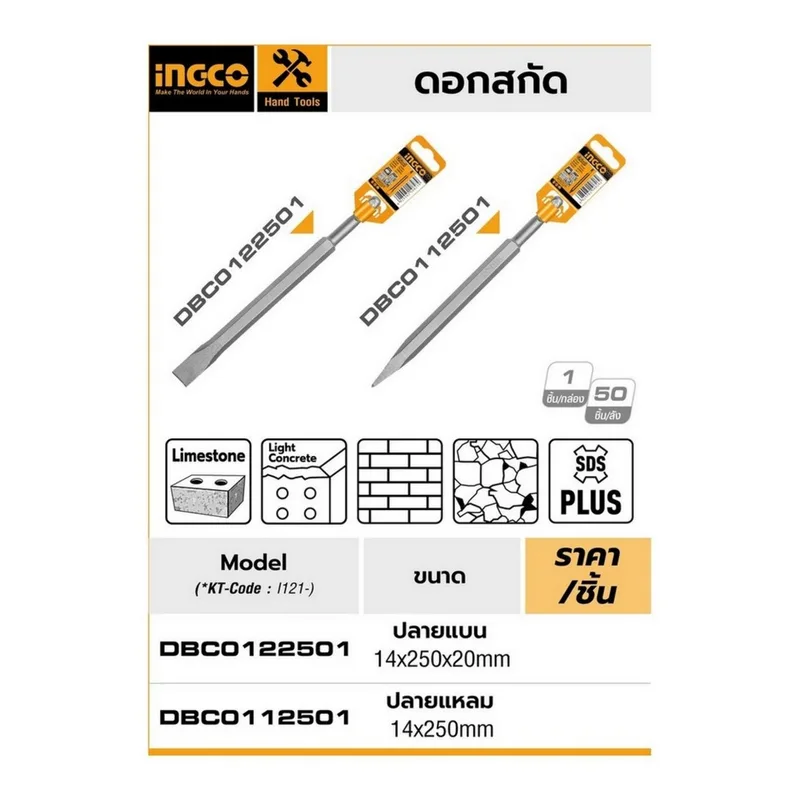 INGCO ดอกสกัดปลายแบน แกน SDS รุ่น DBC0122501 ขนาด 14x250x20 มิลลิเมตร (อิงโก้)
