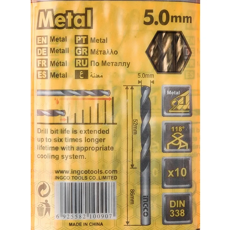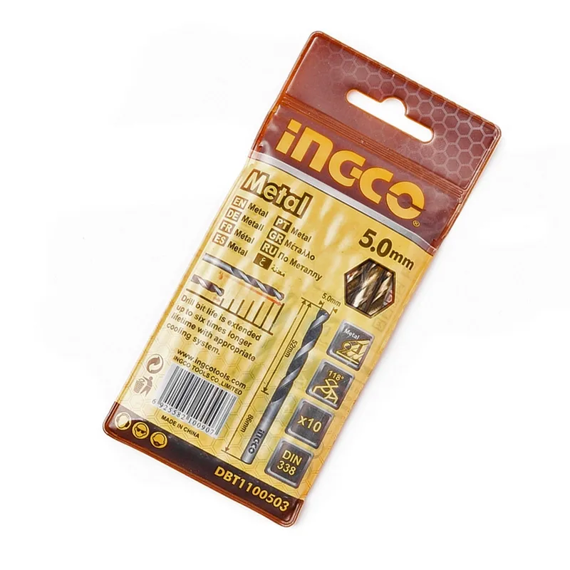 INGCO ดอกสว่านไฮสปีด เส้นผ่าศูนย์กลาง 5.0 มม. รุ่น DBT1100503 ความยาว 86 มม. ช่วงเจาะ 52 มม. (10 ชิ้น/แพ็ค) (อิงโก้)