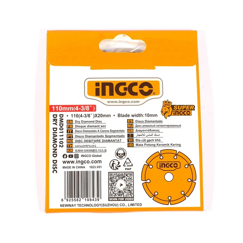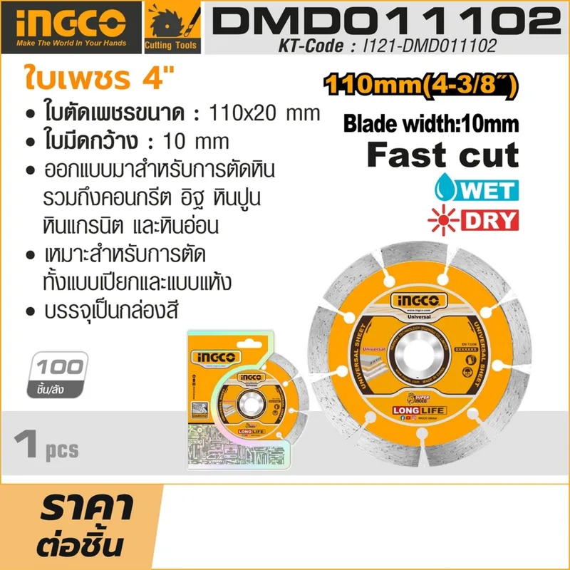 ใบตัดเพชร ขนาด 4 นิ้ว แบบแห้ง INGCO รุ่น DMD011102
