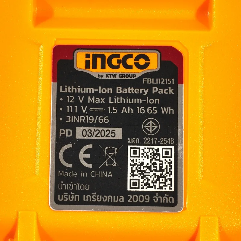 INGCO แบตเตอรี่ลิเธียม 12V 1.5Ah แบบสไลด์ (เสียบ Adapter) รุ่น FBLI12151