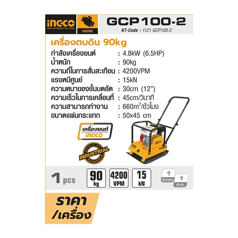 เครื่องตบดิน เครื่องยนต์เบนซิน INGCO รุ่น GCP100-2