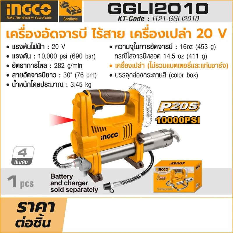 เครื่องอัดจารบีไร้สาย INGCO รุ่น GGLI2010