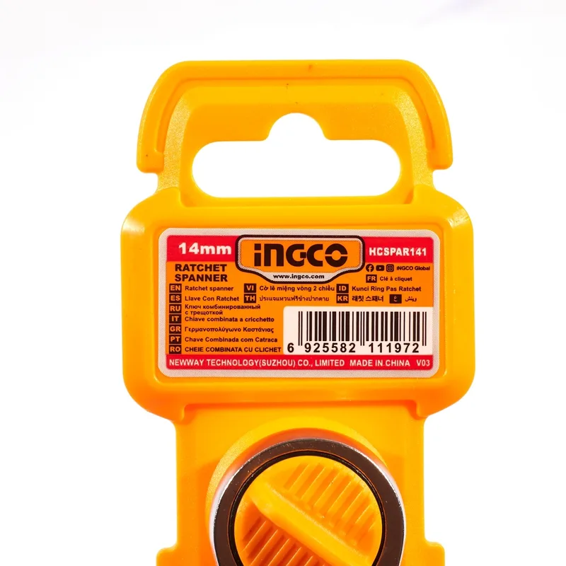 INGCO ประแจแหวนเกียร์ (Ratchet Wrench) เบอร์ 14 มม. เหล็ก CR-V รุ่น HCSPAR141