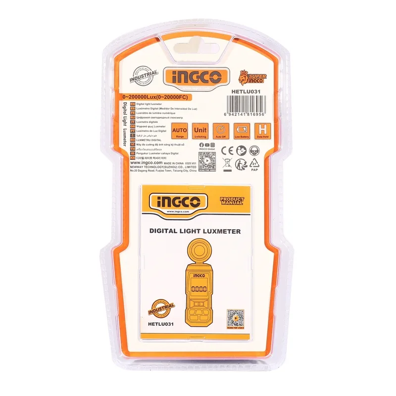 INGCO เครื่องวัดแสงสว่างดิจิตอล (Lux Meter) รุ่น HETLU031