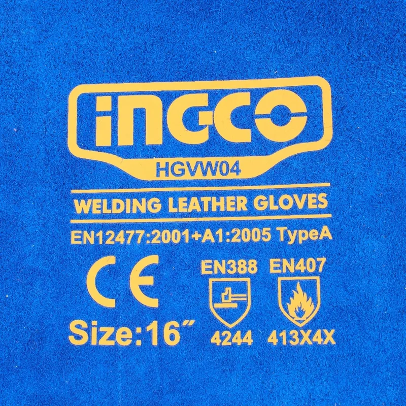 INGCO ถุงมือหนัง สำหรับงานเชื่อม รุ่น HGVW04 ขนาดความยาว 16 นิ้ว สามารถทนอุณหภูมิความร้อนได้ถึง 350 องศา (อิงโก้)