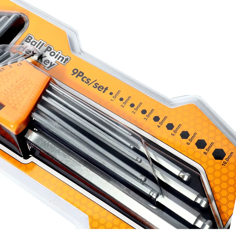 INGCO ชุดประแจแอลหกเหลี่ยม หัวบอล 9 ชิ้น ยาวพิเศษ รุ่น HHK12092 ขนาด 1.5-10 มิลลิเมตร ผลิตจากวัสดุ CR-V