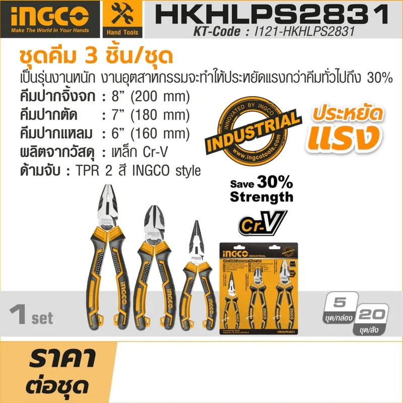 ชุดคีม 3 ชิ้น/ชุด รุ่นงานหนัก ประหยัดแรง INGCO รุ่น HKHLPS2831