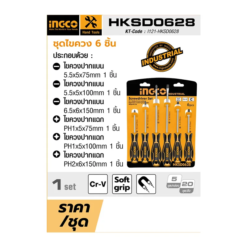 INGCO ชุดไขควง 6 ชิ้น รุ่น HKSD0628