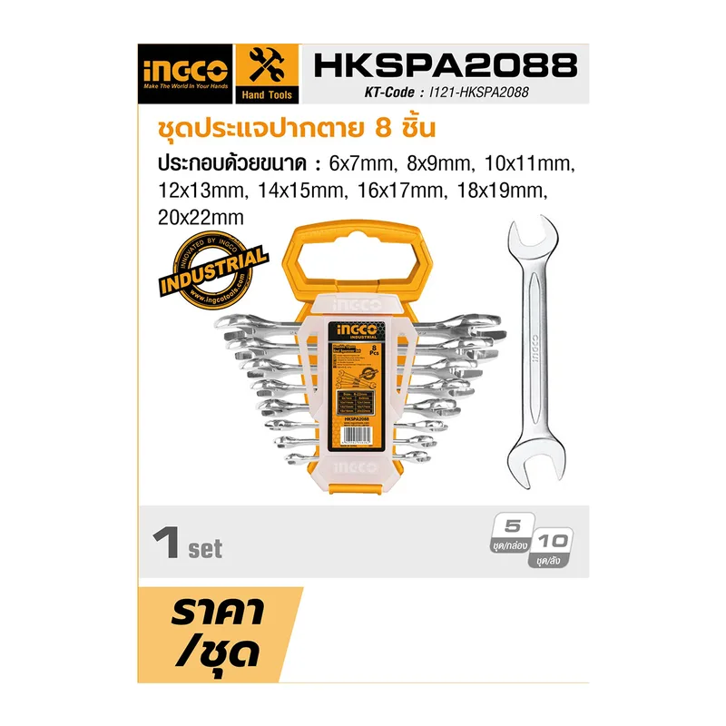 INGCO HKSPA2088 ชุดประแจปากตาย 8 PCS DOUBLE OPEN END SPANNER (อิงโก้)