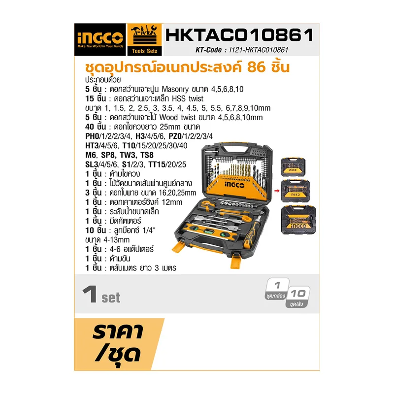 INGCO ชุดอุปกรณ์อเนกประสงค์86ชิ้น รุ่น HKTAC010861