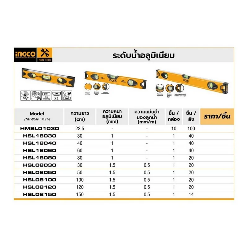 INGCO ระดับน้ำอลูมิเนียม พร้อมแม่เหล็ก รุ่น HMSL01030