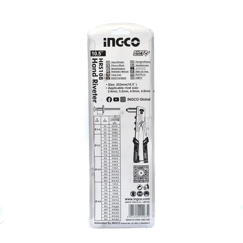 INGCO คีมย้ำรีเวท ขนาด 10.5 นิ้ว รุ่น HRS108 ใช้กับลูกยิงรีเวทขนาด 2.4, 3.2, 4.0, 4.8 มม. (อิงโก้)