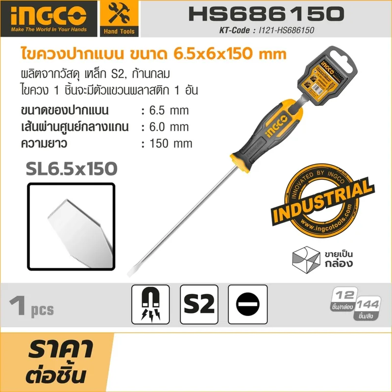 ไขควงปากแบน INGCO ขนาด 6.5x6x150 มม. รุ่น HS686150