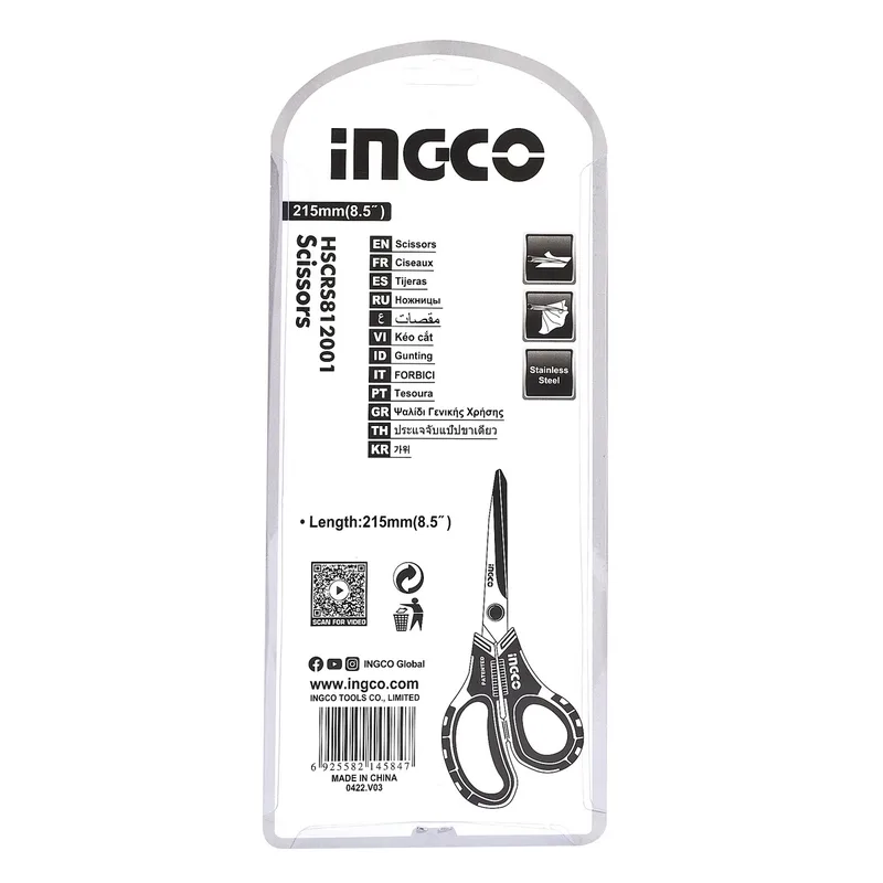 กรรไกรสเตนเลส 8.5 นิ้ว INGCO รุ่น HSCRS812001