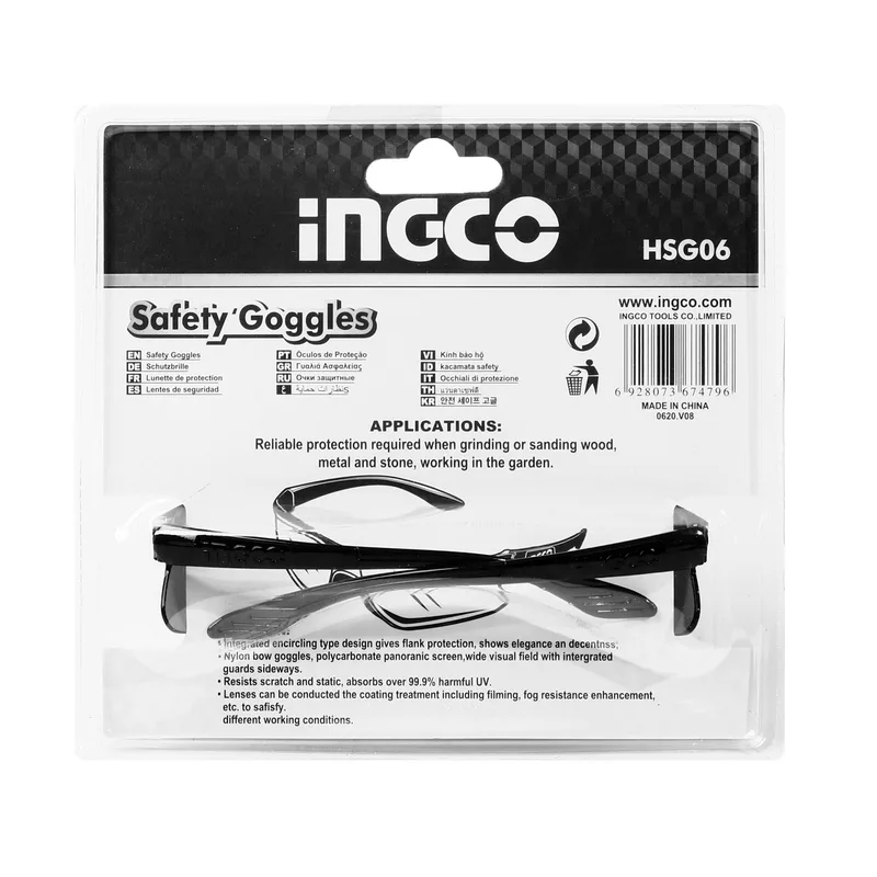 แว่นตาเซฟตี้กันแสงแดด INGCO รุ่น HSG06 วัสดุเลนส์ โพลีคาร์บอเนต
