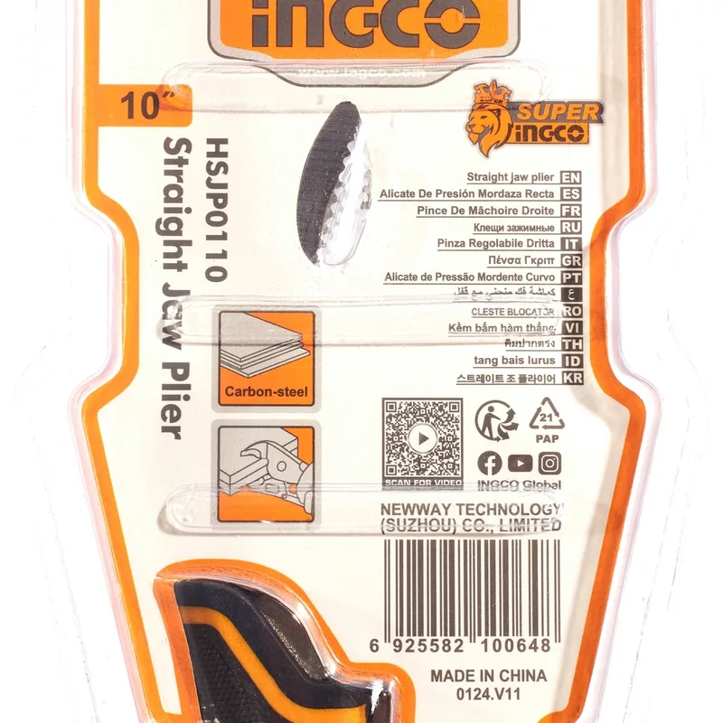 INGCO คีมล็อคปากตรง 10 นิ้ว รุ่น HSJP0110