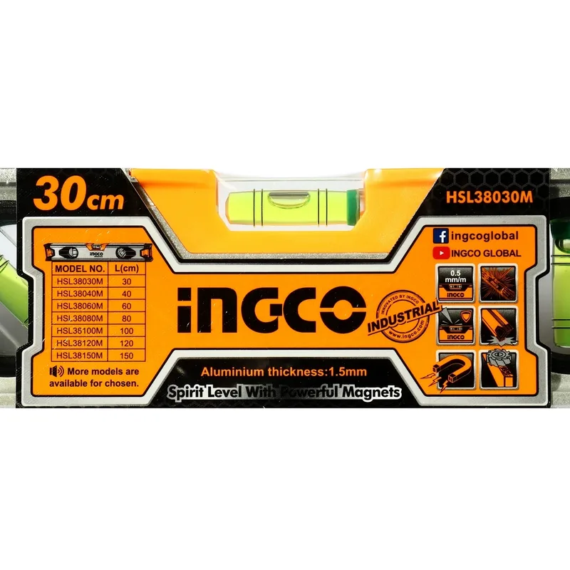 INGCO HSL38030M ระดับน้ำ30CM(12″)+แม่เหล็ก SPIRIT LEVEL(WITH POWERFUL MAG (อิงโก้)