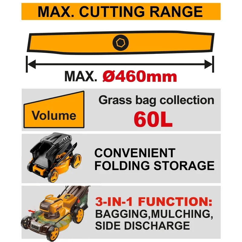 - ความจุถุงเก็บหญ้า: 60 ลิตร