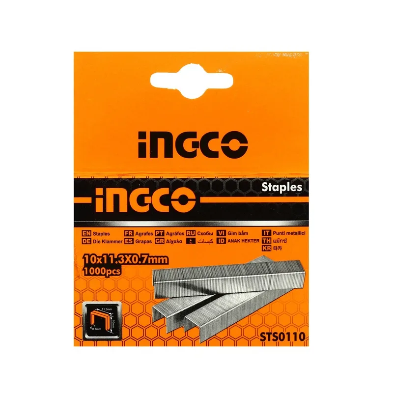 INGCO ลวดแม็กซ์ ขนาด 10 มม. กว้าง 11.3 มม. หนา 0.7 มม. ใช้กับเครื่องยิงแม็กซ์ รุ่น HSG1403 บรรจุ 1000 นัด/กล่อง (อิงโก)