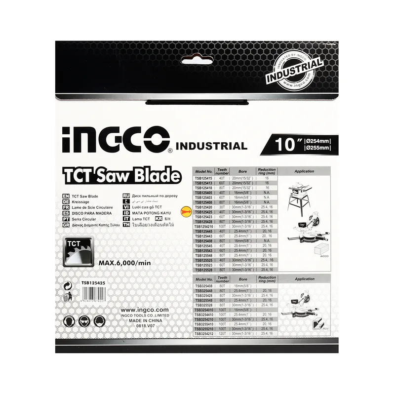 INGCO TSB125425 ใบเลื่อยวงเดือน 10″ 40T TCT SAW BLADE (อิงโก้)