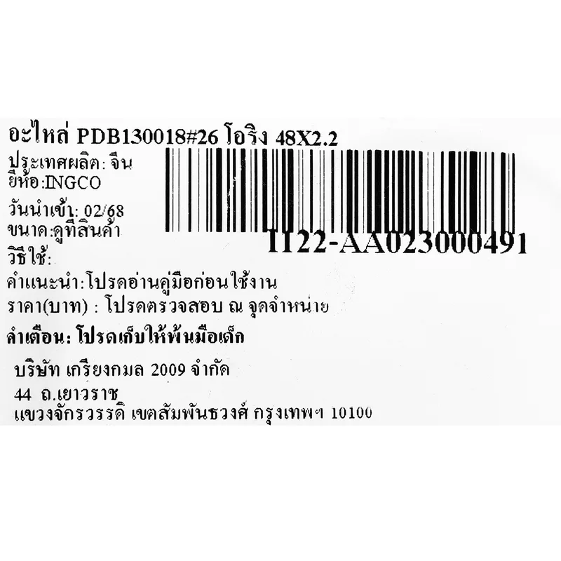 - INGCO อะไหล่ PDB130018#26 โอริง 48X2.2 (รหัสอะไหล่ AA023000491)
