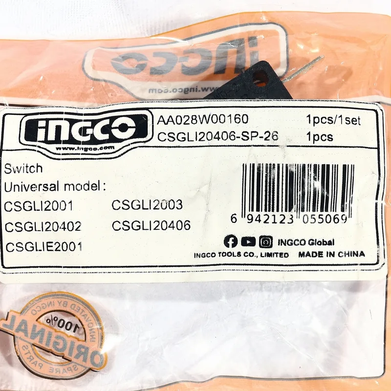 - INGCO อะไหล่ CSGLI20406#26 สวิทซ์ (รหัสอะไหล่ AA028W00160)
