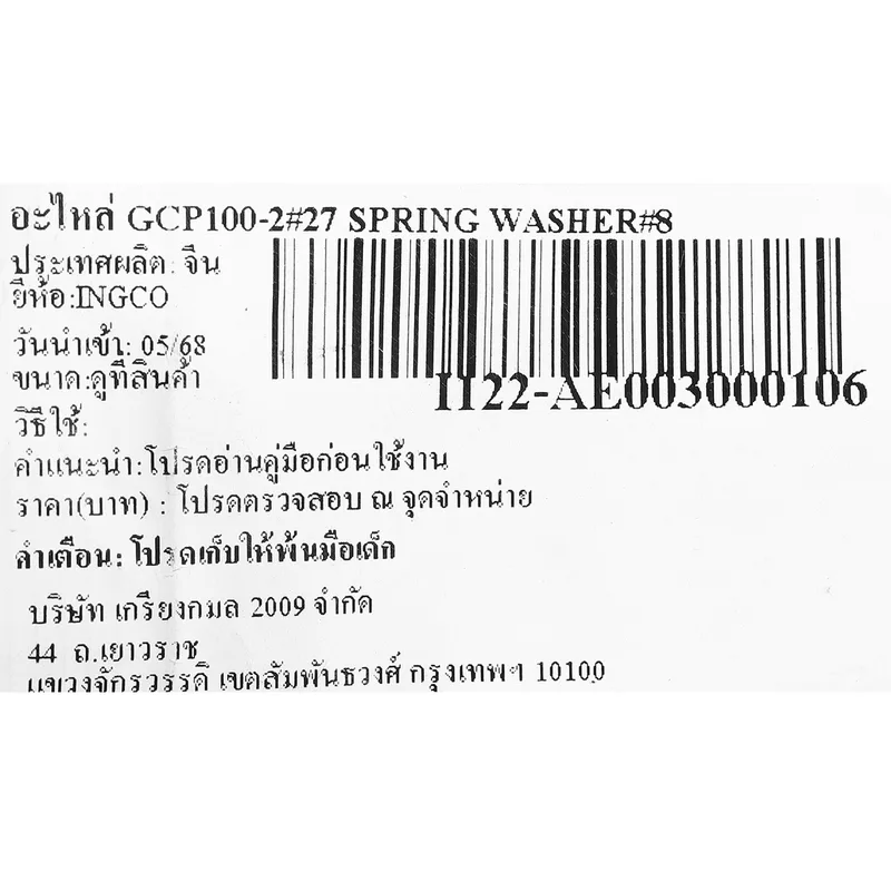 INGCO อะไหล่ SPRING WASHERΦ8 เบอร์ 27 สำหรับรุ่น GCP100-2