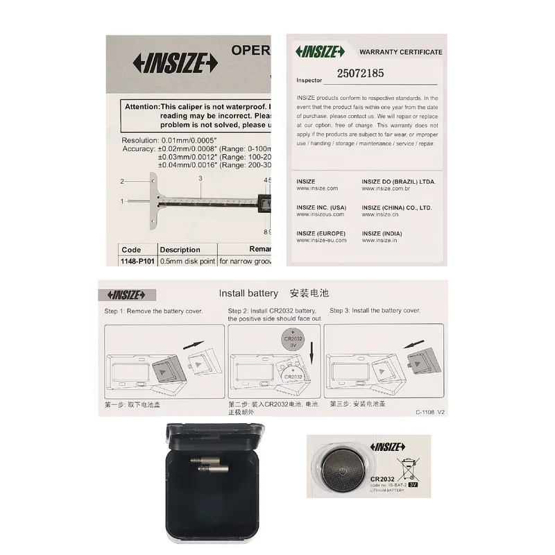 INSIZE เกจวัดความลึกดิจิตอล ช่วงวัด 0-100 มม. (0-4 นิ้ว) ความละเอียด 0.01 มม. รุ่น 1148-100