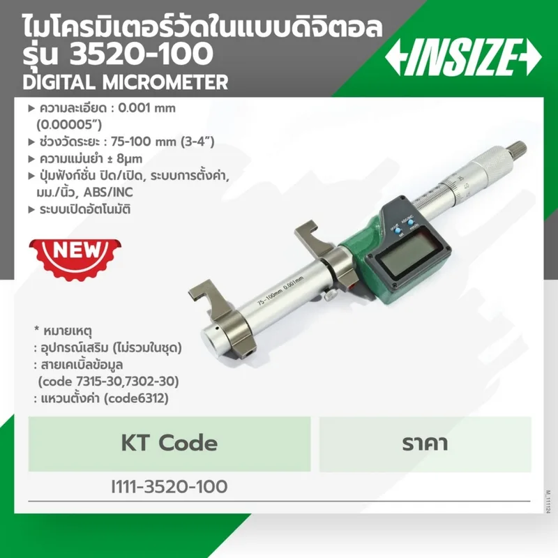 ไมโครมิเตอร์วัดในแบบดิจิตอล INSIZE รุ่น 3520-100