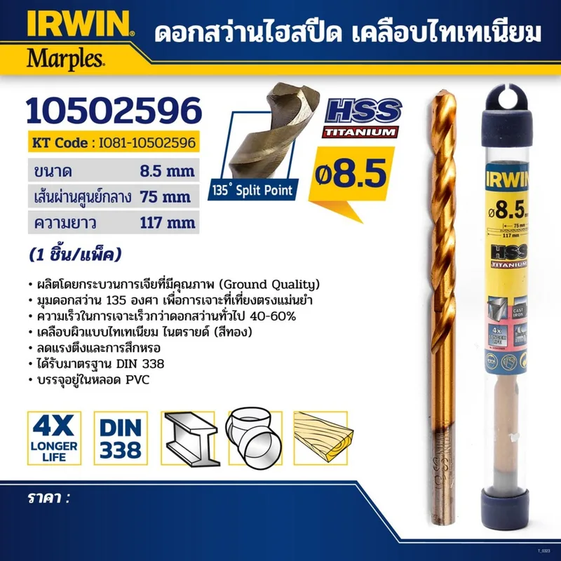 - กระบวนการผลิต: ดอกสว่านของ IRWIN ผลิตโดยกระบวนการเจียที่มีคุณภาพ
