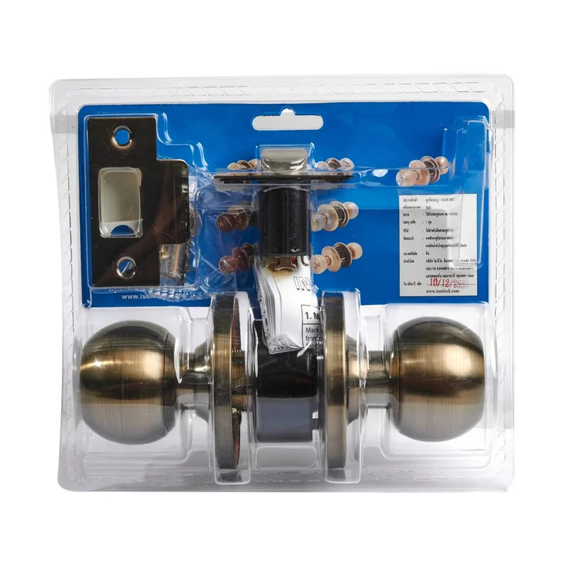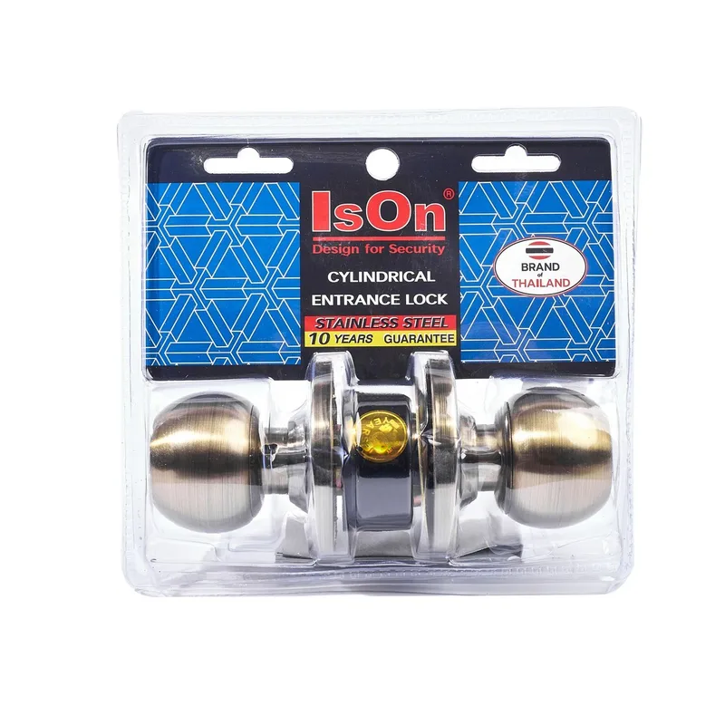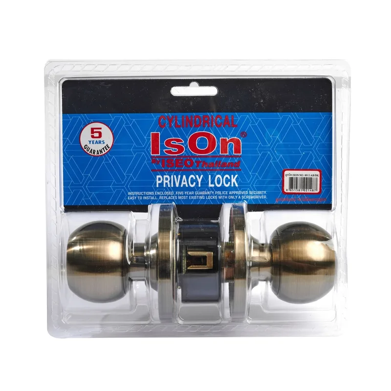 ISON ลูกบิดประตูห้องน้ำ หัวกลม จานใหญ่ รุ่น 8013-AB-BK วัสดุตัวเรือนทองเหลือง ขนาดจาน 75 มม. (อีสออน)
