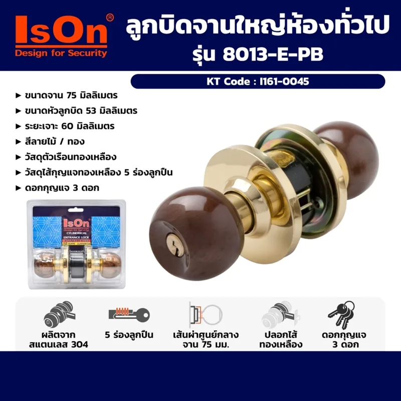 ISON ลูกบิดจานใหญ่ห้องทั่วไปลายไม้ รุ่น 8013-E-PB