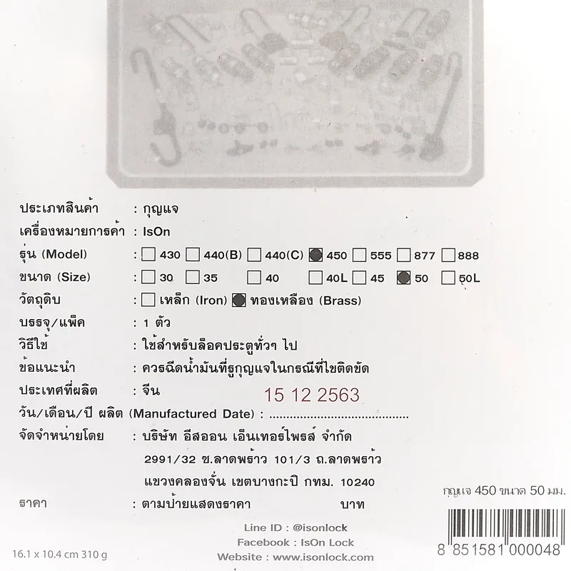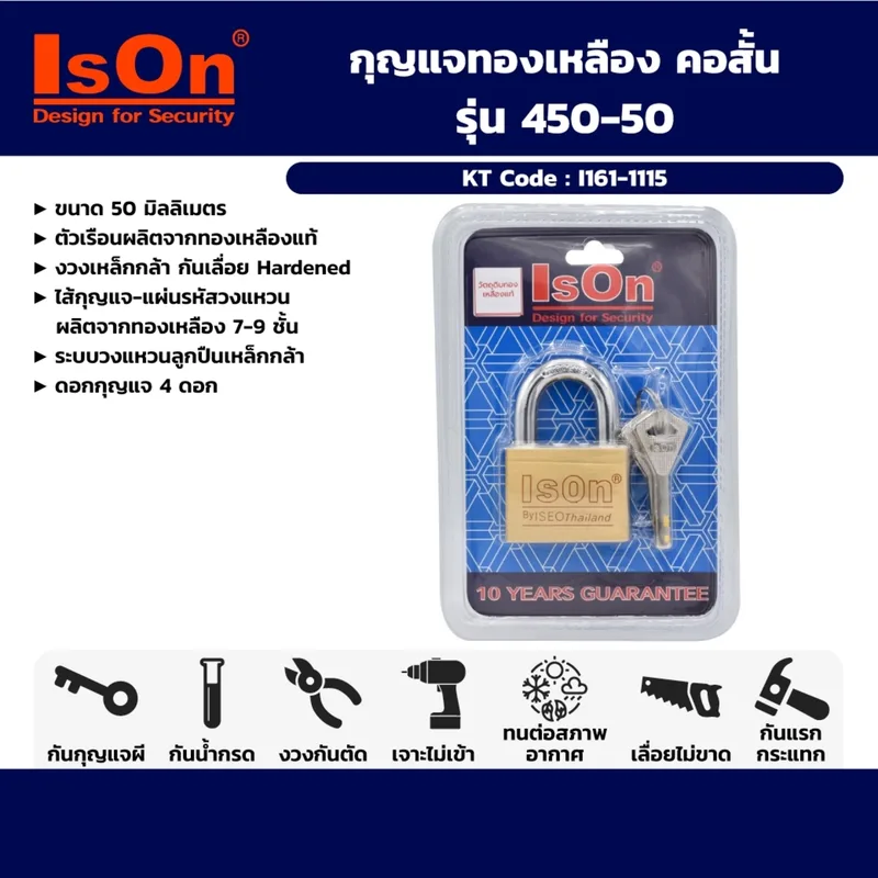 ISON กุญแจทองเหลือง คอสั้น 50มม. NO.450