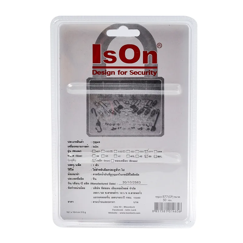 ISON กุญแจคล้องเหล็ก คอสั้น 50 มม. NO.877 CP