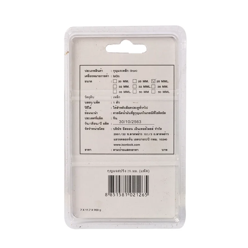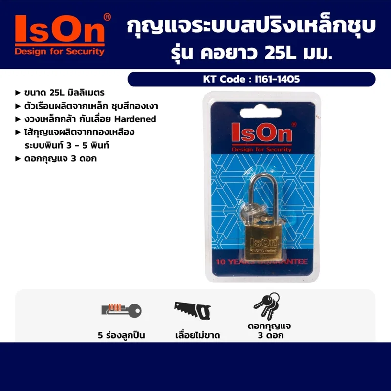 ISON กุญแจระบบสปริงเหล็กชุบ คอยาว 25L มม.