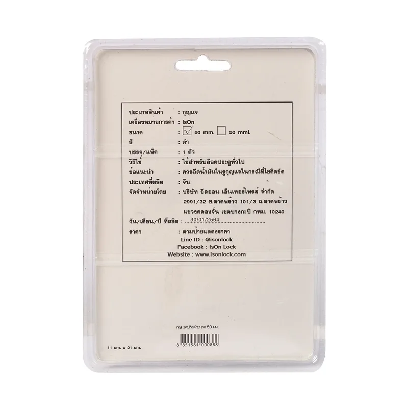 ISON กุญแจระบบสปริงเหล็กดำ คอสั้น 50 มม.