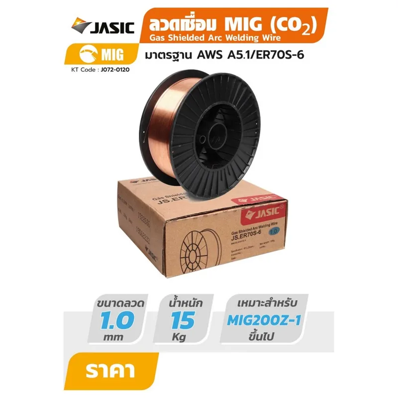 JASIC ลวดเชื่อม MIG เหล็ก ER70S ขนาด 1.0mm 15KG ใช้แก๊ส