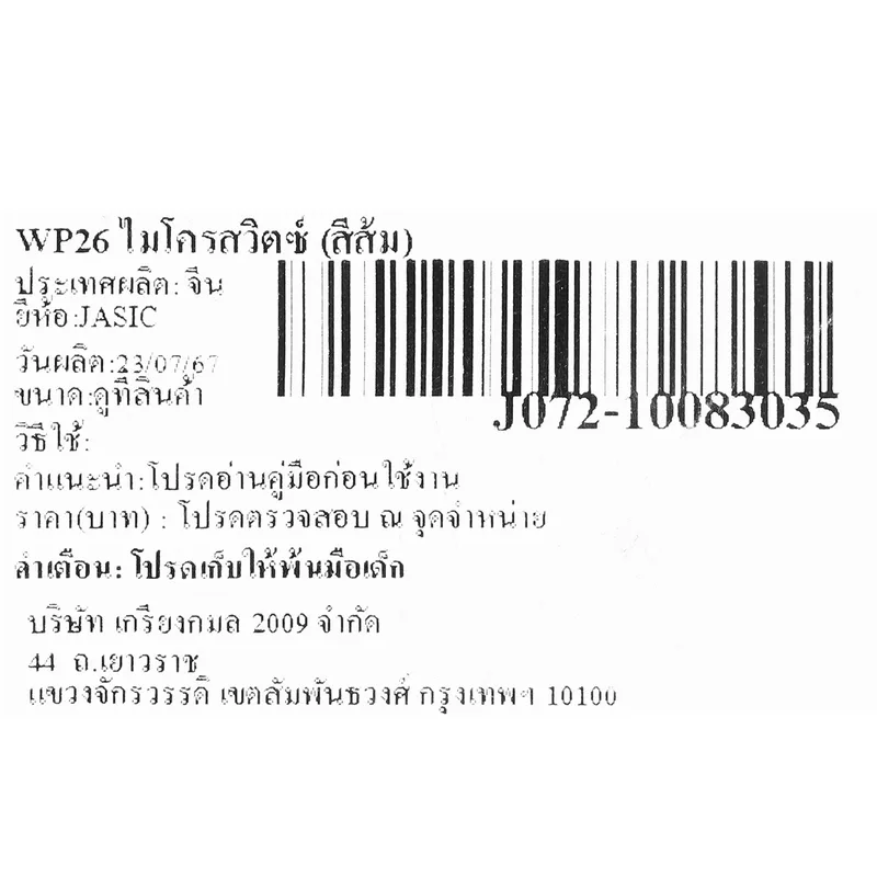 JASIC อะไหล่ WP26 ไมโครสวิตซ์ (Micro Switch) ใช้กับชุดสายเชื่อมทิก 8M ด้ามสีส้ม รุ่น WP26 (เจสิค)