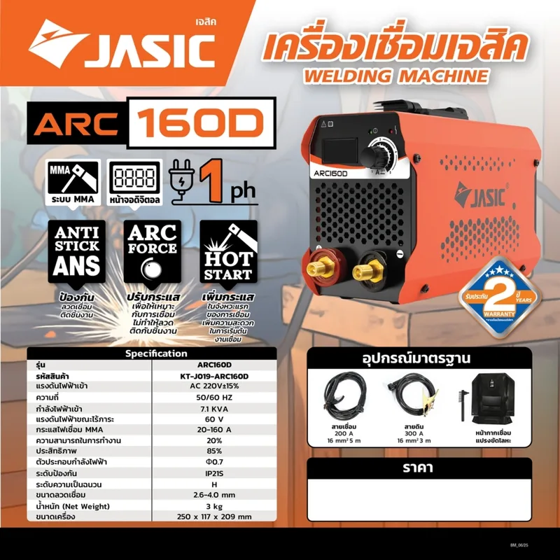 JASIC เครื่องเชื่อมอาร์ค (MMA) 160A ระบบ INVERTER 1 เฟส 220V หน้าจอดิจิตอล รุ่น ARC160D