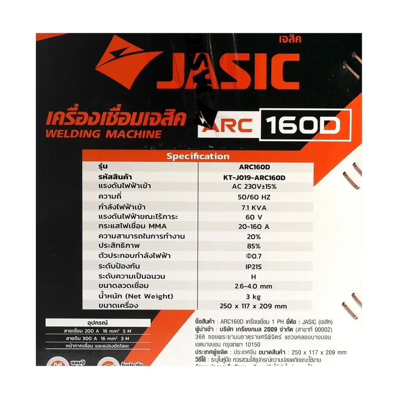 เครื่องเชื่อม 1 เฟส JASIC รุ่น ARC160D