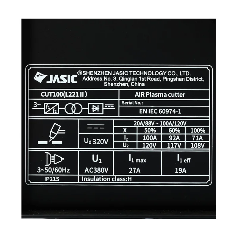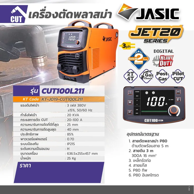 JASIC (เจสิค) เครื่องตัดพลาสม่า รุ่น CUT100L211II แรงดันไฟ 3 เฟส 380 โวลต์ ความหนาในการตัดสูงสุด 40 มม. ระบบป้องกัน IP21S