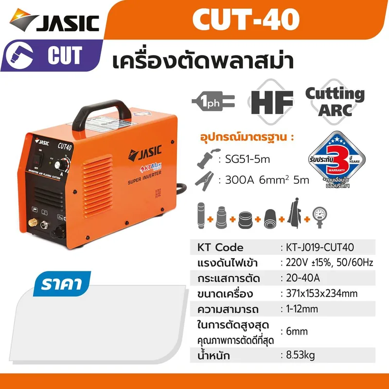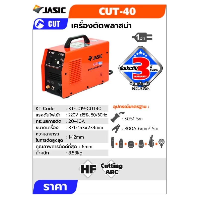 JASIC เครื่องตัดพลาสมา (Plasma Cutter) 40A IGBT Inverter รุ่น CUT40