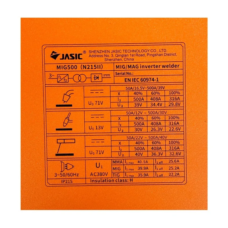 JASIC เครื่องเชื่อม MIG MIG/MMA/Lift TIG 500A INVERTER IGBT 3 เฟส 380V ป้อนลวดในตัว รุ่น MIG500N215