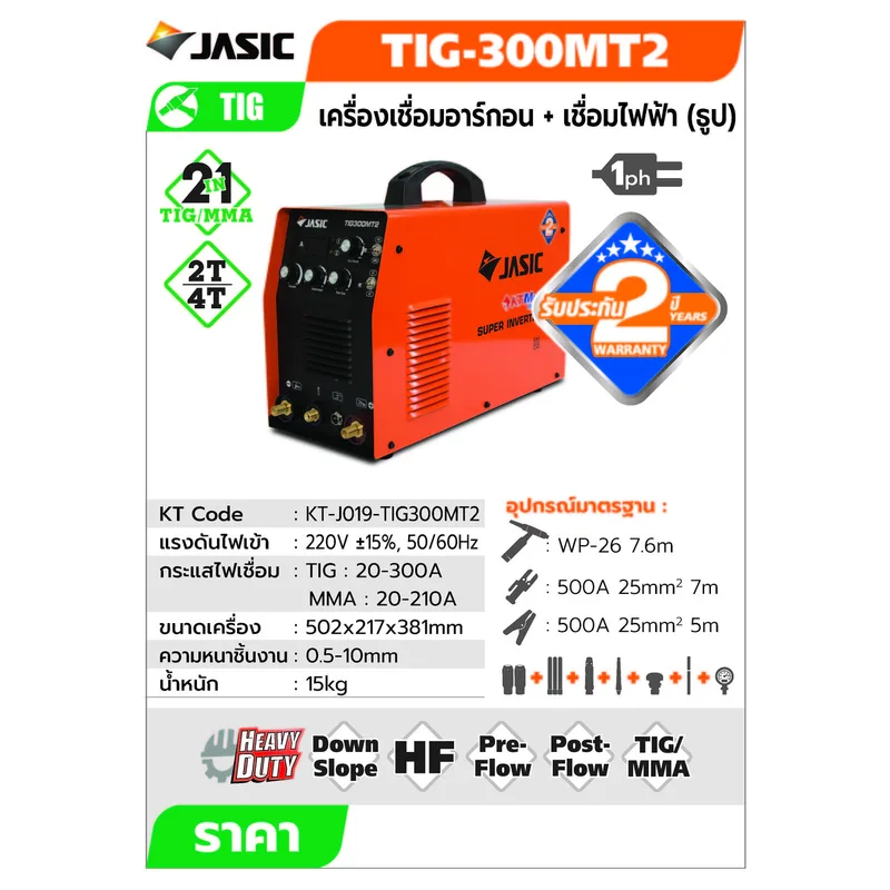 JASIC เครื่องเชื่อม TIG 300A DC INVERTER HF Start 1 เฟส 220V รุ่น TIG300MT2